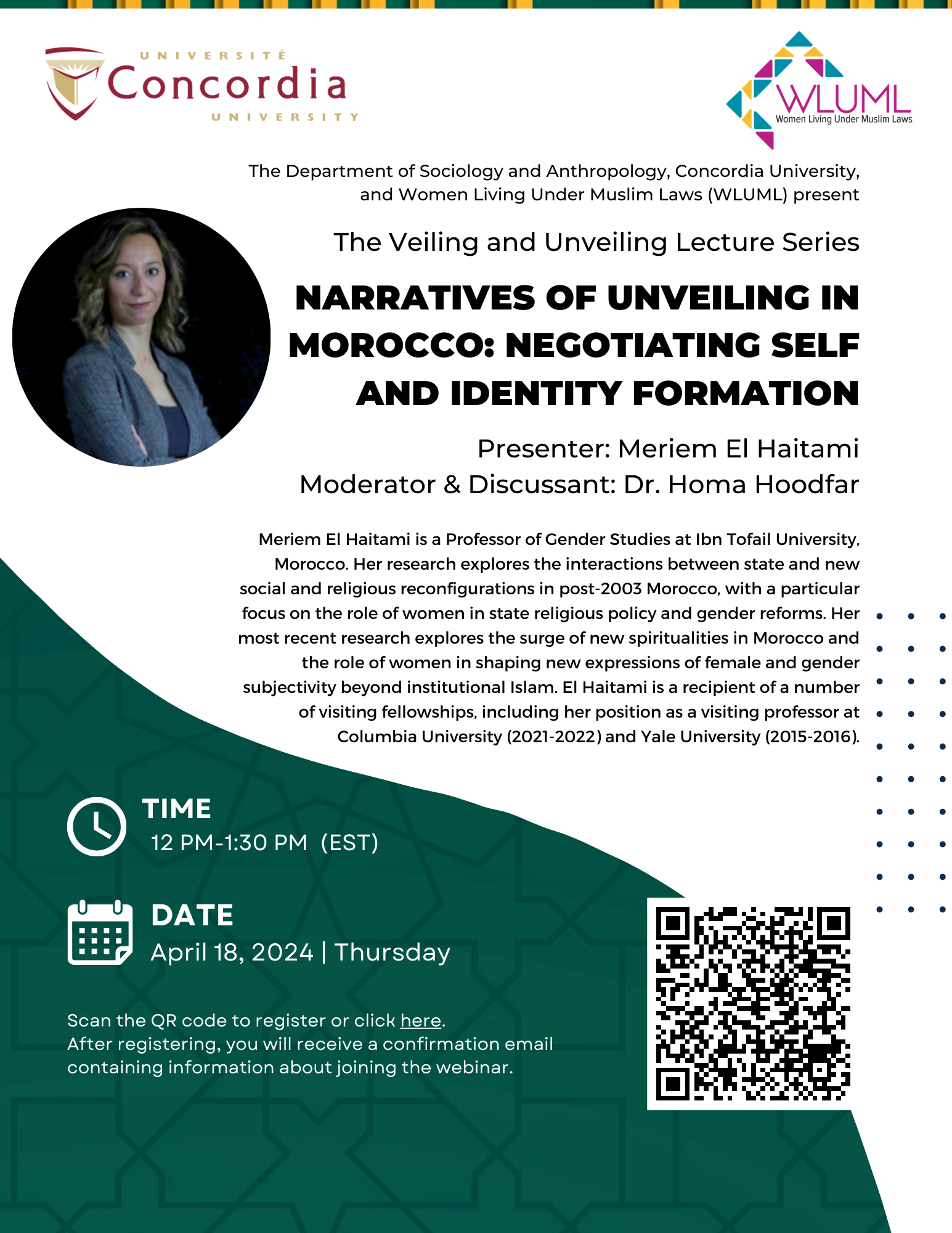 Scan the QR code to register or click here: https://concordia-ca.zoom.us/meeting/register/tZYsdeCvrTIvHd2MGb1WkSzFVaK4MBVQCaI6#/registration